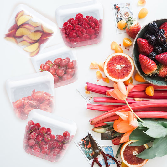purifyou Reusable Silicone Storage Snack Bags 6oz / 16oz / 32oz / 64oz Self-Seal Food Storage Container for Fruits, Vegetables, Sandwiches, Dishwasher Safe & Leak-free