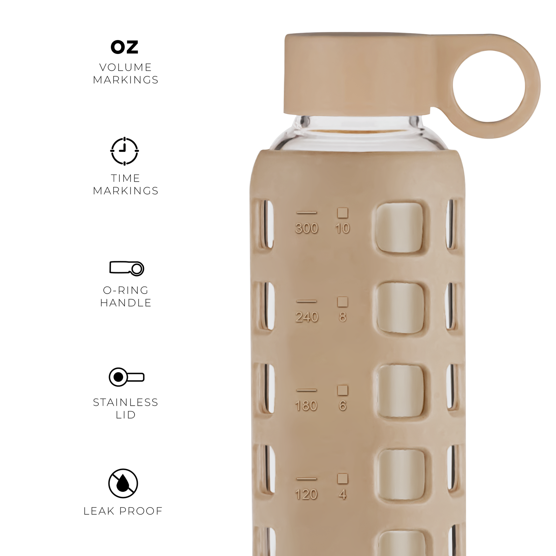 Time & Volume Markings - to help you track your water intake and keep you hydrated throughout the day