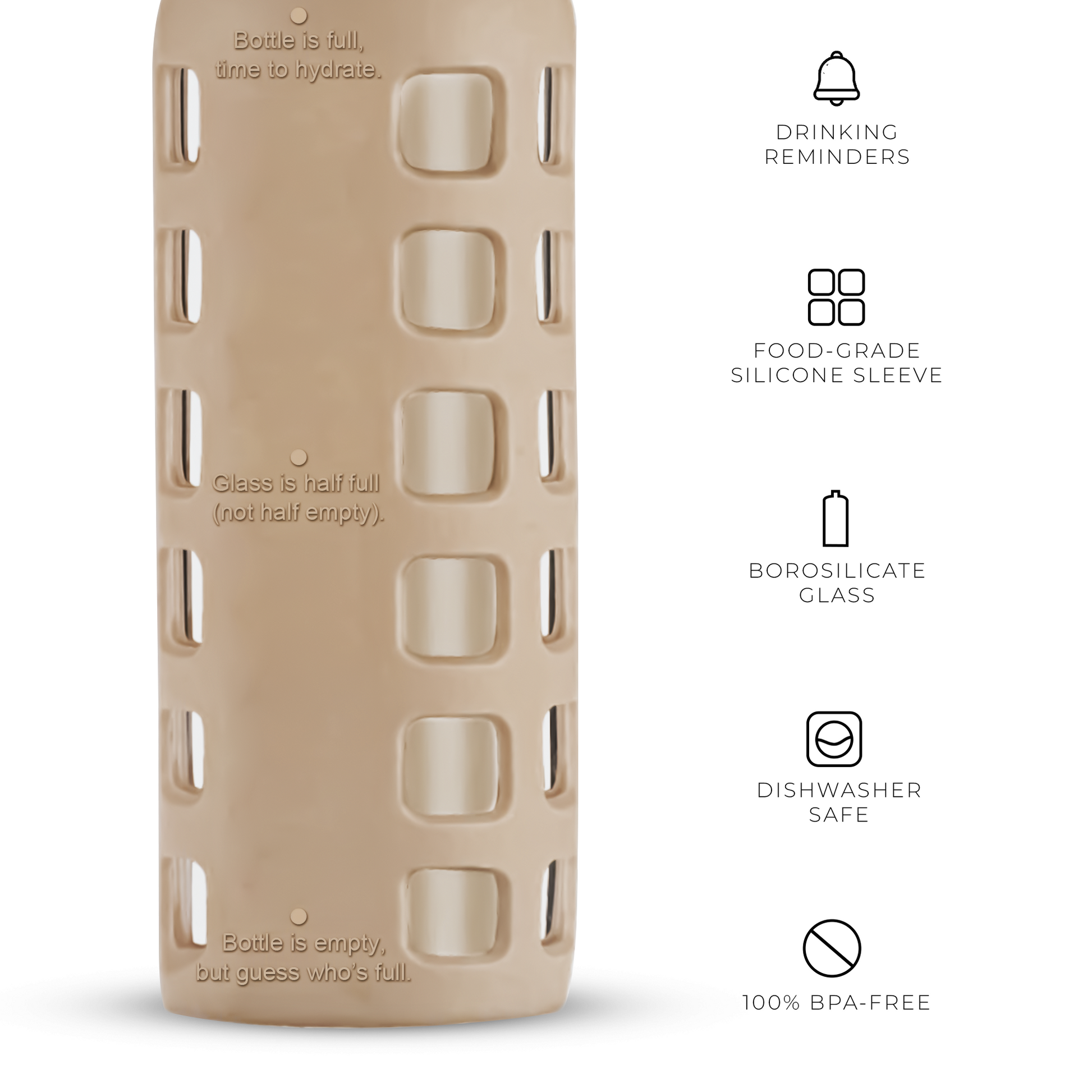 Our versatile glass water bottles are designed for every scenario, whether you’re hiking, camping, hitting the gym, relaxing at home, working in the office, or enjoying the beach. Over the years, this simple yet refined bottle has been continuously improved based on customer feedback, now packed with thoughtful features to keep you effortlessly hydrated all day long.
